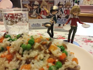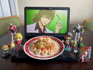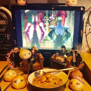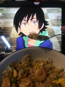 From Ars. “I made fried rice and lemon cake with strawberries for a recent taibani rewatch with a buddy of mine! There’s some edamame beans and chopped up kamaboko mixed into the rice for bright greens and pinks ❤ Even after all these years, this show still manages to get me all hyped up! I can’t wait to see what else is in store when season two rolls in~ \( ;W; )/”