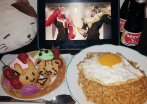 From Emi, Eliz & Ninx. “Happy Anniversary Tiger & Bunny, thankyou for 10 wonderful years! Here’s to many more, we’re all super excited for season 2 ❤ We decided to celebrate by cosplaying Kotetsu, Barnaby and Ivan – cooking & eating our friend rice together over Zoom!”