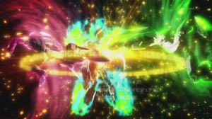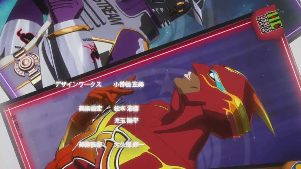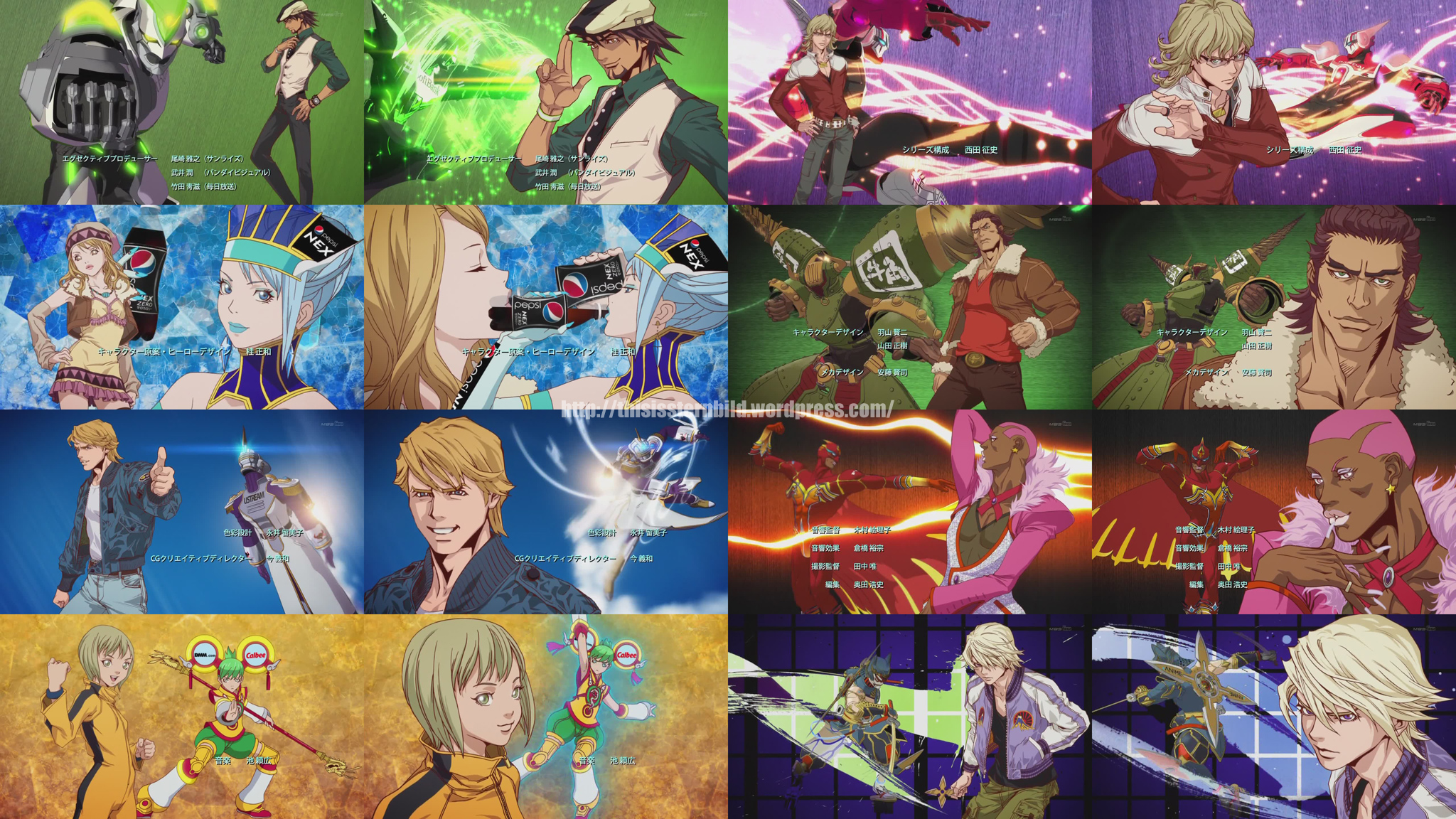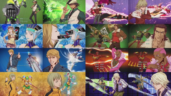 After that we’re shown a pan of Justice Tower in the middle of Sternbild. Then the camera briefly cuts to Alexander Lloyds and from there to what seems to be a set of hero cards. Then the rest of the heroes (Keith, Nathan, Pao-Lin and Ivan) present themselves and their sponsors. Ivan/Origami Cyclone’s presentation is almost comical since he’s gained three new sponsors – living up to his nickname of “walking billboard” with a total of four sponsors, more than any other hero. Nathan/Fire Emblem has also gained an additional sponsor, and now has Animate logo on his other shoulder.