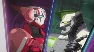 Like I mentioned in the episode 14 post, new opening and ending songs premiered. They’re similar in style as the first set of songs and both are performed by new artists. This is also going to be the post where I finally throw my hands in the air in resignation. It was a personal challenge for me to not let my fujoshi show and not talk about all the gay subtext in the series but even the new opening and ending sequences both show that the series creators are pairing Kotetsu and Barnaby. Truthfully, maybe my challenge was silly now that I’ve been reading comments about episode 14 – it’s really hard to be blind to how these guys are acting around each other. Even my straight male friends are pointing it out to me.