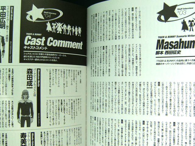 Official Hero Book focuses on the staff interviews with director Keiichi Satou, producer Kazuhiko Tamura and designer Masami Ozone, and screenwriter Masafumi Nishida. There’s also a section with mini interviews with all the main cast members (all eight heroes’ + Lunatic’s voice actors).