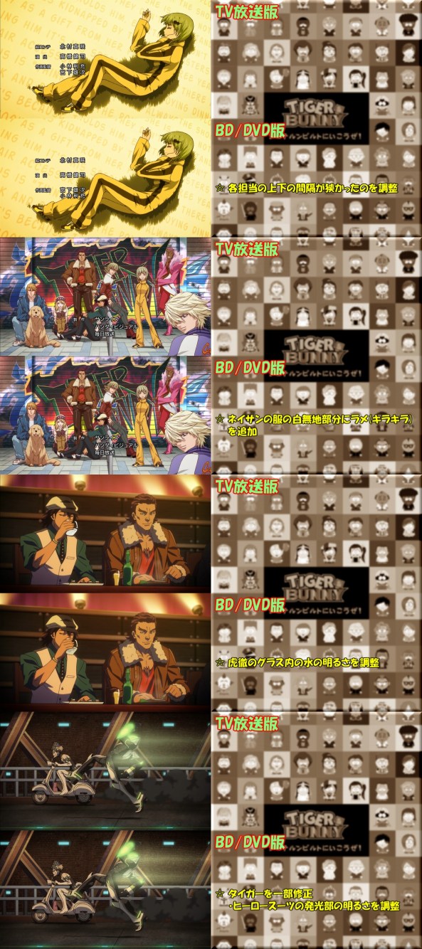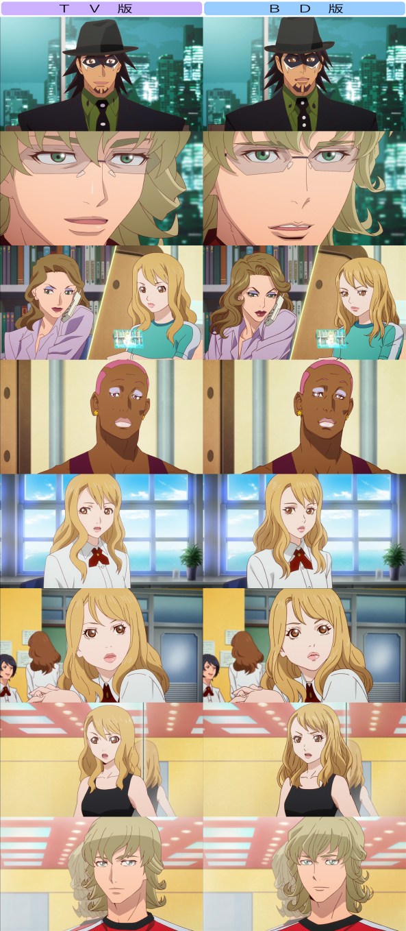 1. It’s strange, but the only changes I don’t really like are the changes on Kotetsu’s eyes >w> They seem normal enough to me in the TV shots, but are so big, dark and brown in the BD version. The rest greatly improved, though! ❤ Barnaby's curls are given some extra love, and I love how Nathan got such pretty eyelashes now ❤