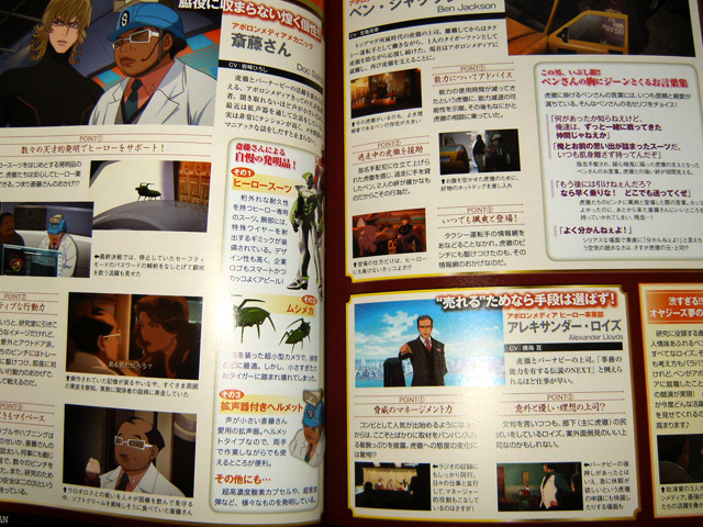 Official Hero Book 2 has a four page interview with director Satou Keiichi (4 pages), three page interview with Hirata Hiroaki (Wild Tiger) & Hidaka Rina (Kaede), and six pages of mini interviews with the main cast (all eight heroes and Lunatic) and sound director Kimura Eriko. The interview pages are again text heavy and a quite dull compared to the colourful ones in Hero TV Fan vol. 2.