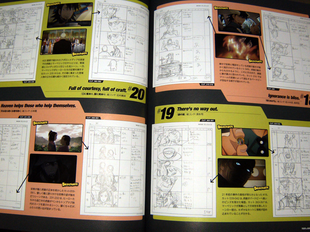 Tables have turned, Doc Saito’s machine guide is in Official Hero Book 2 this time, spanning two pages. There are two pages of Sky High’s best sayings, and Origami Cyclone spotting and Scarf-tan pages are included again. Storyboard section has the best cuts from each episode. There’s also a quick recap of the first cour.