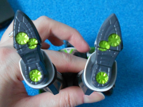 The paint job is great and the clear parts look really nice, but some of the parts have marks at the seams where the plastic was molded. It doesn’t really bother me, they’re at the backs of his legs and arms so I probably won’t even see them often.
