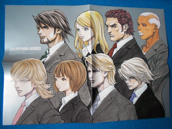 The figure was smaller and heavier than I’d expected at first. It comes with switchable hands and chestplate. The default chestplate has a Young Jump magazine logo; Katsura’s own super hero manga ZETMAN is serialized in Young Jump and also the Tiger & Bunny manga one-shot that’s included in the book was first printed in Young Jump. Young Jump’s publisher Shueisha also published this artbook.
