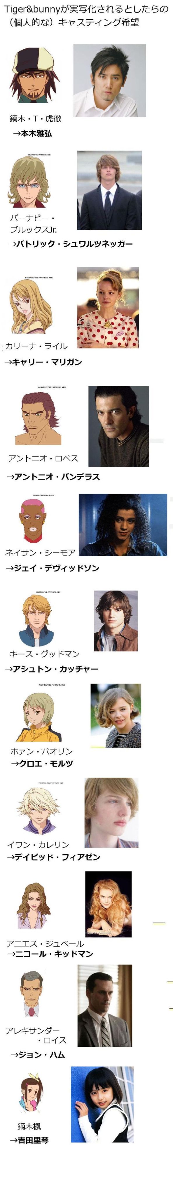 Whether or not you like the idea of a live-action Tiger & Bunny, Ozaki has no plans for that at the moment and he is currently concentrating on the already announced movie projects. That hasn’t stopped the Japanese fans from making speculations about a dream cast for a Hollywood live-action adaptation: