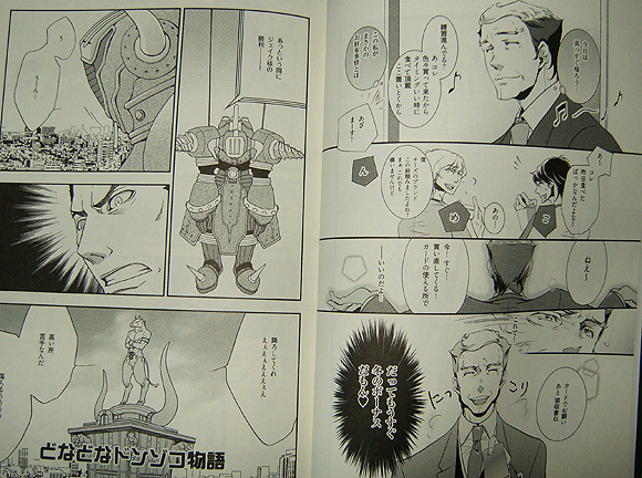 I’ve not had time to read all the stories in GO! GO!! 1 yet – I’m going for the artists I know first – but so far the bits I have read have been really fun. The artists are mostly known for BL doujinshi (I actually have some books by Eikichi and K. Arima in my collection), and I think Sano Masaki & Watanabe Kyou are the biggest names on the list. As always there’s a few that have art I don’t really like, but overall quality is good. Like the other anthologies, this doesn’t count as canon but the stories are approved by Sunrise – official logo is on the back cover.