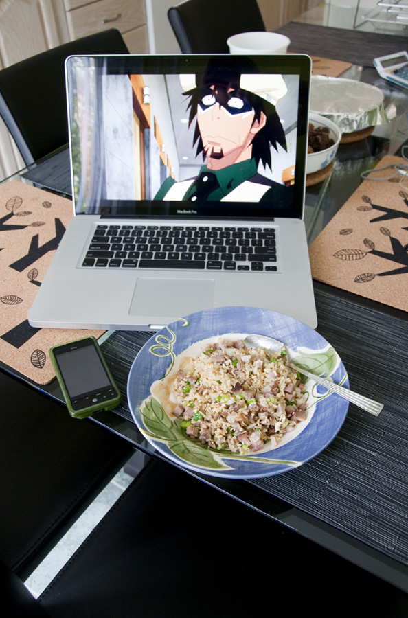 From Kachi. “It’s Saturday over here and I was going to make some fried rice to celebrate the final Superhero Saturday / Sunday. I come downstairs to find that my mom coincidentally made some fried rice (as though she could read my mind)! The photo of Kotetsu I chose reflects the facial expression that I had upon this discovery.”