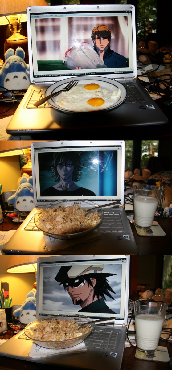 From Sarah. “I hastily made some rice before the show aired today and ate while watching. Thankfully it was not salted with the taste of tears. Also made some eggs sunny side up for Keith, and the milk is for Barnaby. T&Bros for life.”