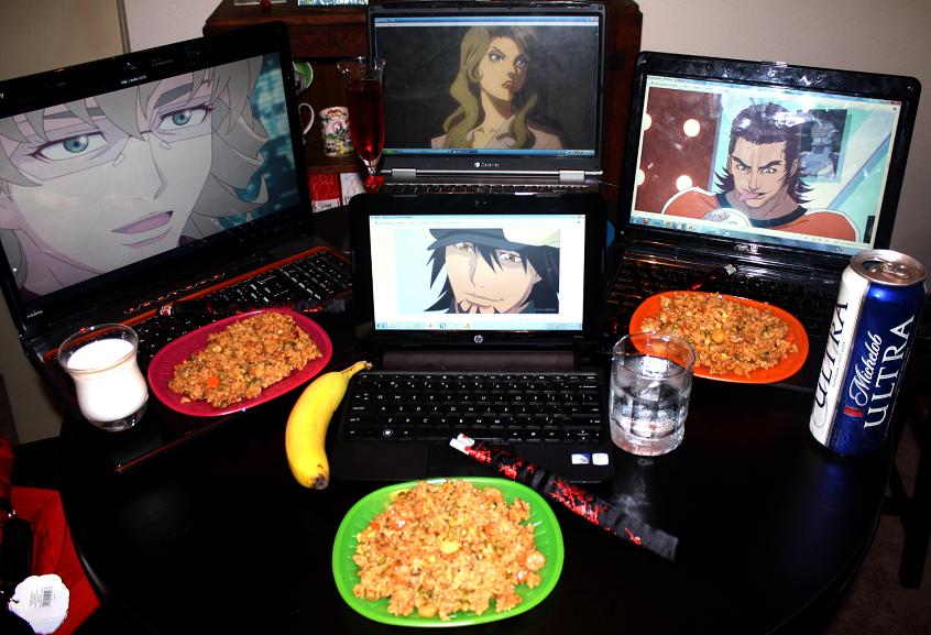 From A.S. “”Hello! I’m the member of This is Sternbild’s following who prefers eating with friends rather than eating alone! For Superhero Saturday, I had myself, my Girl-friend, and two of our friends over for the season finale, and we celebrated with platefuls of Fried Rice as we watched! [Kotetsu-style. With mayo, don’t you know.] 1) Of course, we needed to give some to the Heroes~ As well as the lovely Agnes [who was oh, so bad-ass].”